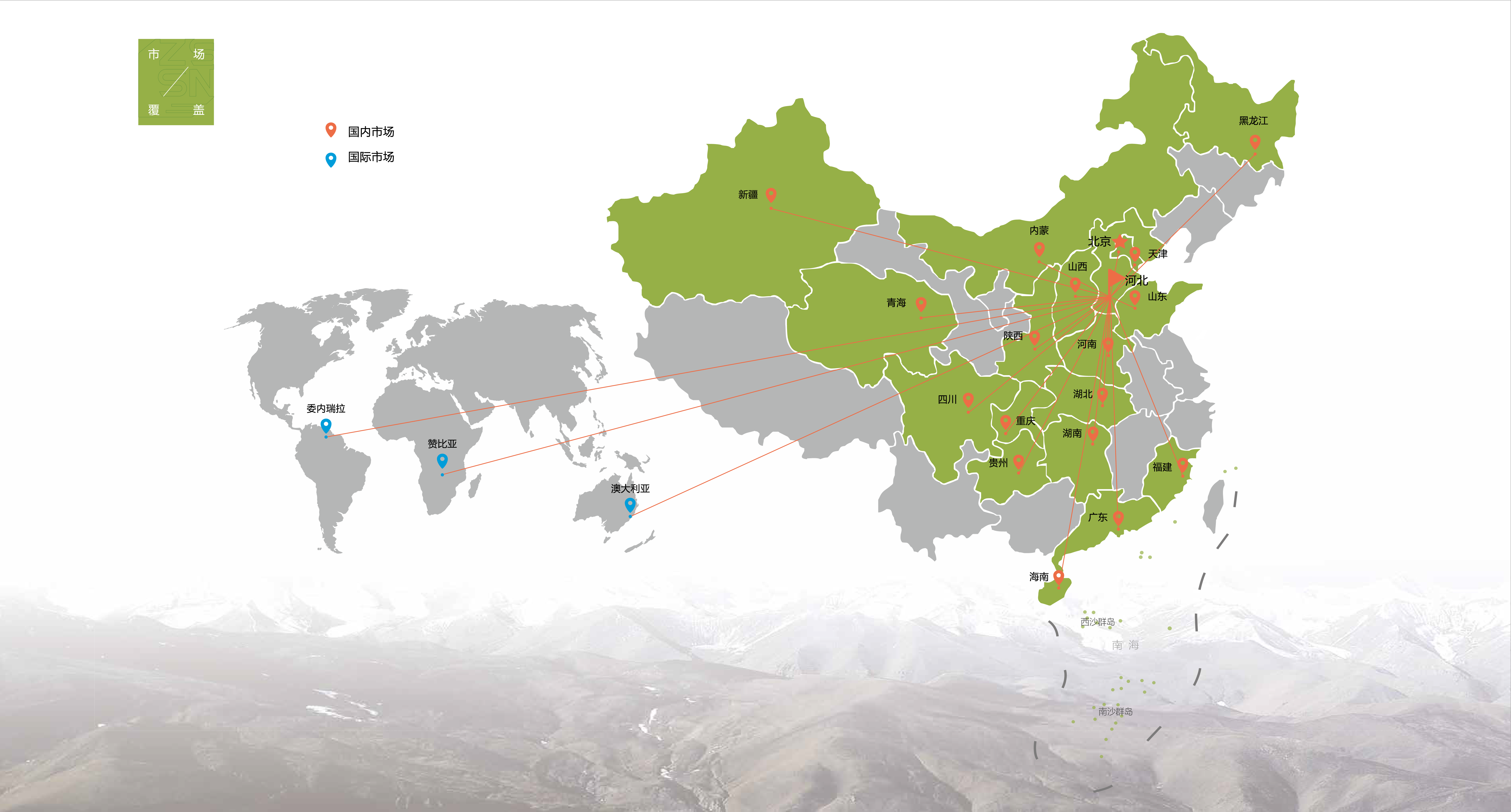 業(yè)務(wù)輻射——國(guó)內(nèi)的華北五省區(qū)市、西北新疆、青海及河南、山西、山東、福建、廣東、海南等地,海外業(yè)務(wù)延伸至澳大利亞、贊比亞、委內(nèi)瑞拉等國(guó)家,